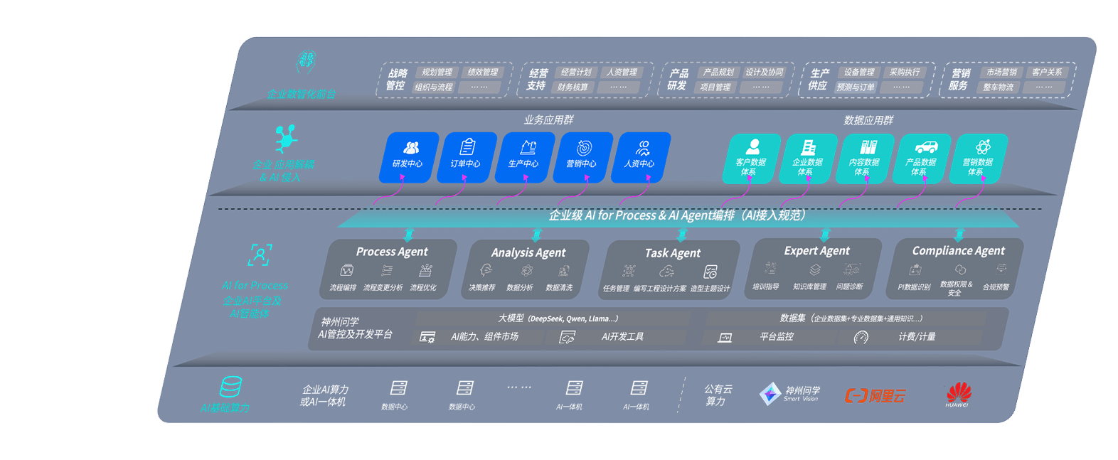 端到端的一站式AI工作空间深度融合了从企业战略规划到日常经营的全流程业务板块,,定向解决车企内部领域多、、、部门多、、、、链条长、、场景碎片化等难题,,,支持车企快速构建以AI为核心的生产力写作体系,,,,实现任务执行与AI能力的无缝集成与交互